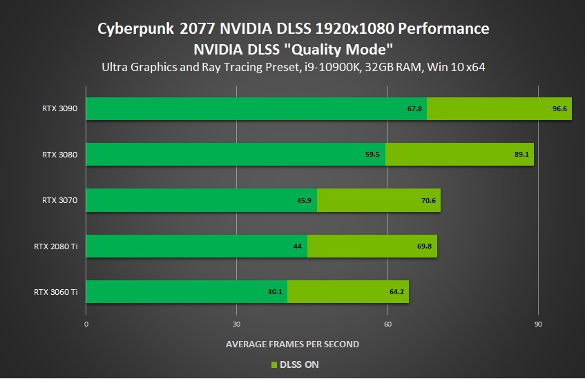 오늘 엔비디아가 게시한 새 기사에는 사이버펑크 2077에 대한 벤치결과 차트가 없었지만 DLSS 공식 지원 발표 후 누락된 벤치결과 그래프를 찾았다고 합니다.