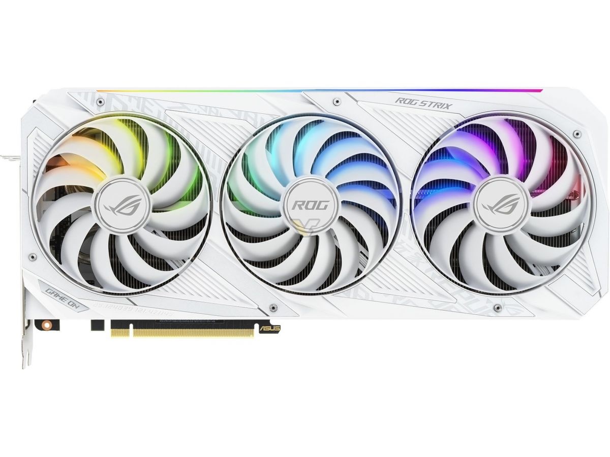 새로운 ROG STRIX 디자인을 기반으로 한 카드는 트리플 슬롯과 32cm 길이 (GA102 기반) 입니다.