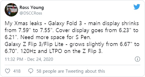 현재 최신정보는 DisplaySearch 및 DSCC의 창립자 및 리드 분석가인 Ross Young 이 밝힌 내용이며 그는 출시 될 장치에 대한 정보를 크리스마스 때 유출을 공유했습니다.