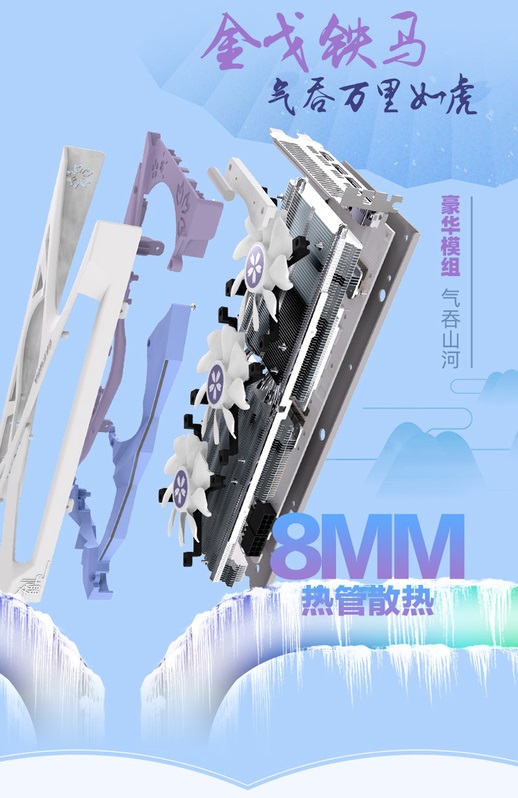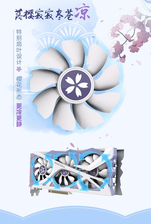 그래픽 카드에는 장미 꽃잎 모양의 쿨러 팬과 함께 2.5 슬롯의 디자인의 트리플 팬 냉각 기능을 갖추고 있습니다.