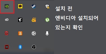 우측 하단의 아이콘에 엔비디아 아이콘이 있으면 이미 그래픽 드라이브가 설치되어 있다는 의미 입니다.