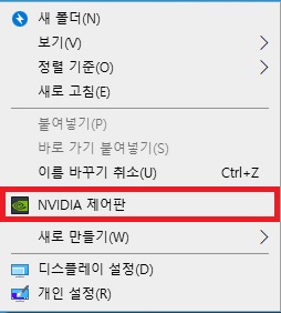 혹은 바탕화면에서 우클릭하여 'NVIDIA 제어판'이 있어도 그래픽 드라이브가 설치되어 있습니다.