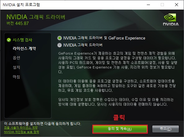 이미 설치되어 있으면 엔비디아 그래픽 드라이브를 설치 할 필요가 없습니다.