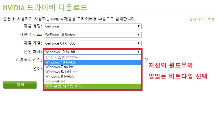 무조건 다운로드하여 설치하는 것이 아닌 그래픽 카드에 맞는 드라이브와 내 운영체제에 맞게 설치해야 됩니다.