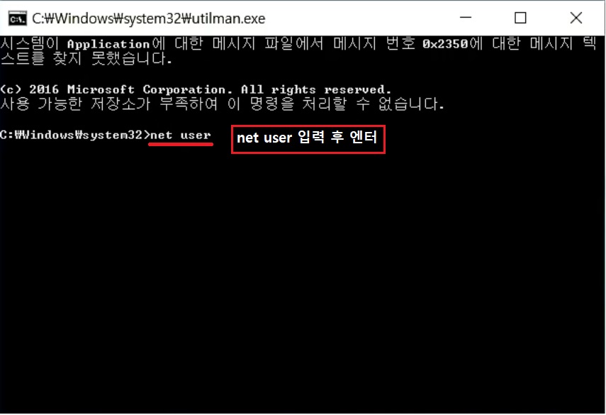 'net user user 12345' 이렇게 입력 했습니다.