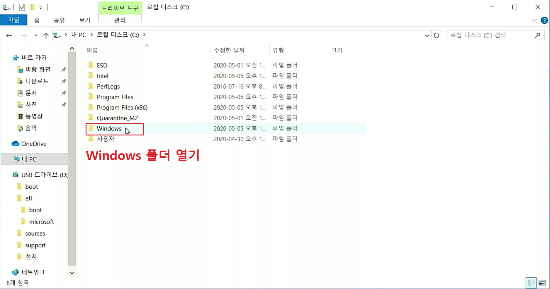 먼저 내 PC에서 윈도우 설치된 드라이브를 실행합니다.
