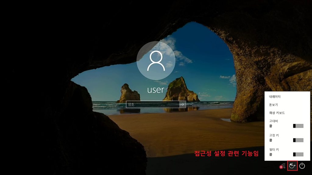 윈도우 비밀번호 입력란에 우측하단에 아이콘들이 있는데 그 중에 '접근성' 이라는 설정이 있습니다. 이 기능이 쥐구멍 중 하나인데, 설정도 일종의 프로그램 중 하나 이기 때문에 프로그램으로 존재하는거죠.