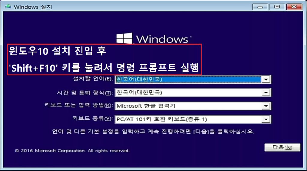 11. 이제 윈도우 10 진입을 했습니다. 명령 프롬프트 열기전 알고 있어야 사항이 있습니다.