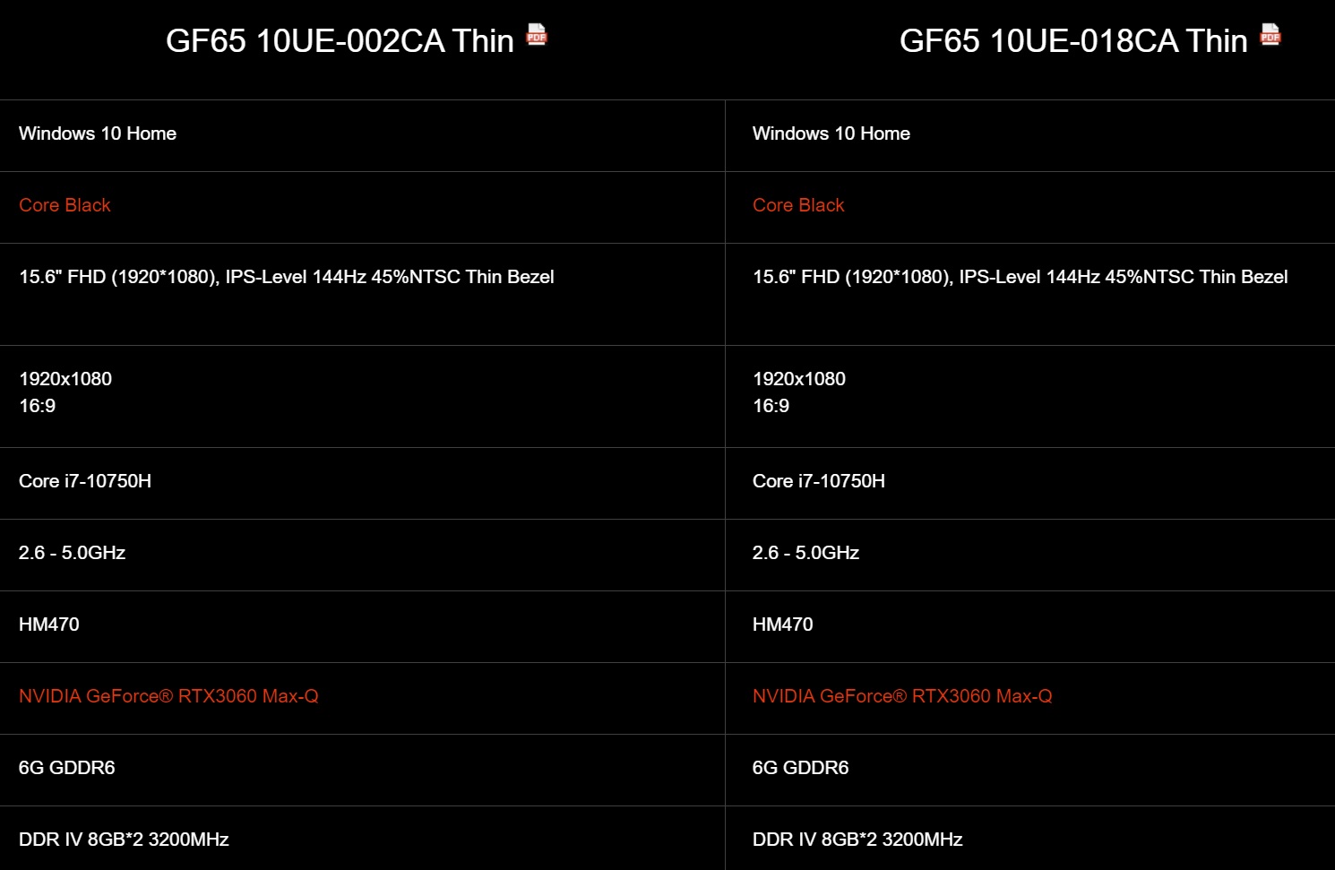 제품 사양에 따르면 GF65 Thin은 GDDR6 6GB 메모리를 갖춘 RTX 3060 Max-Q와 함게 구성되어있습니다.