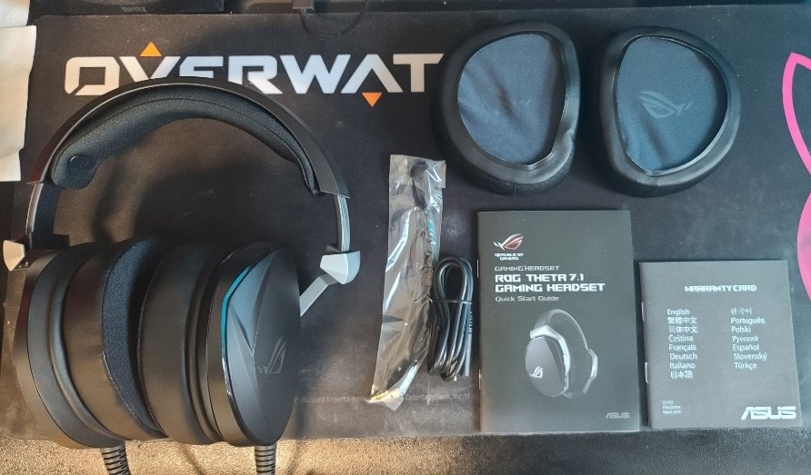 그리고 헤드셋이 하나 있고 중앙에 마치 감사패 보양으로 되어있는 에이수스 로그가 있습니다.