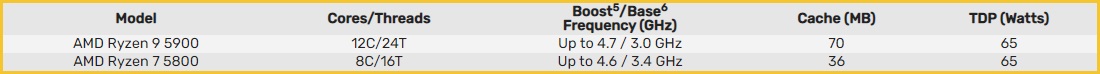 AMD는 수상경력에 빛나는 AMD 라이젠9 5900X 및 AMD 라이젠7 5800X 데스크탑 프로세서에 대한 감소 된 TDP 대안을 사전 구축된 OEM 시스템에만 제공합니다.