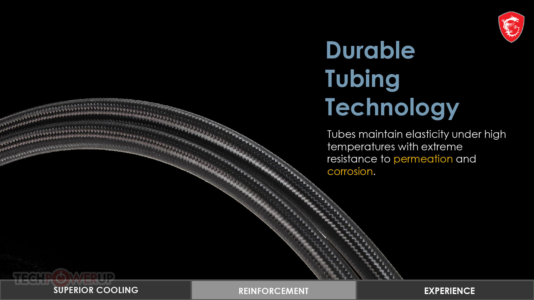 MSI 시호크 펌프는 Torx 4.0 팬이 있는 240mm 라디에이터에 고품질 브레이드 튜브가 부착되어 있습니다.