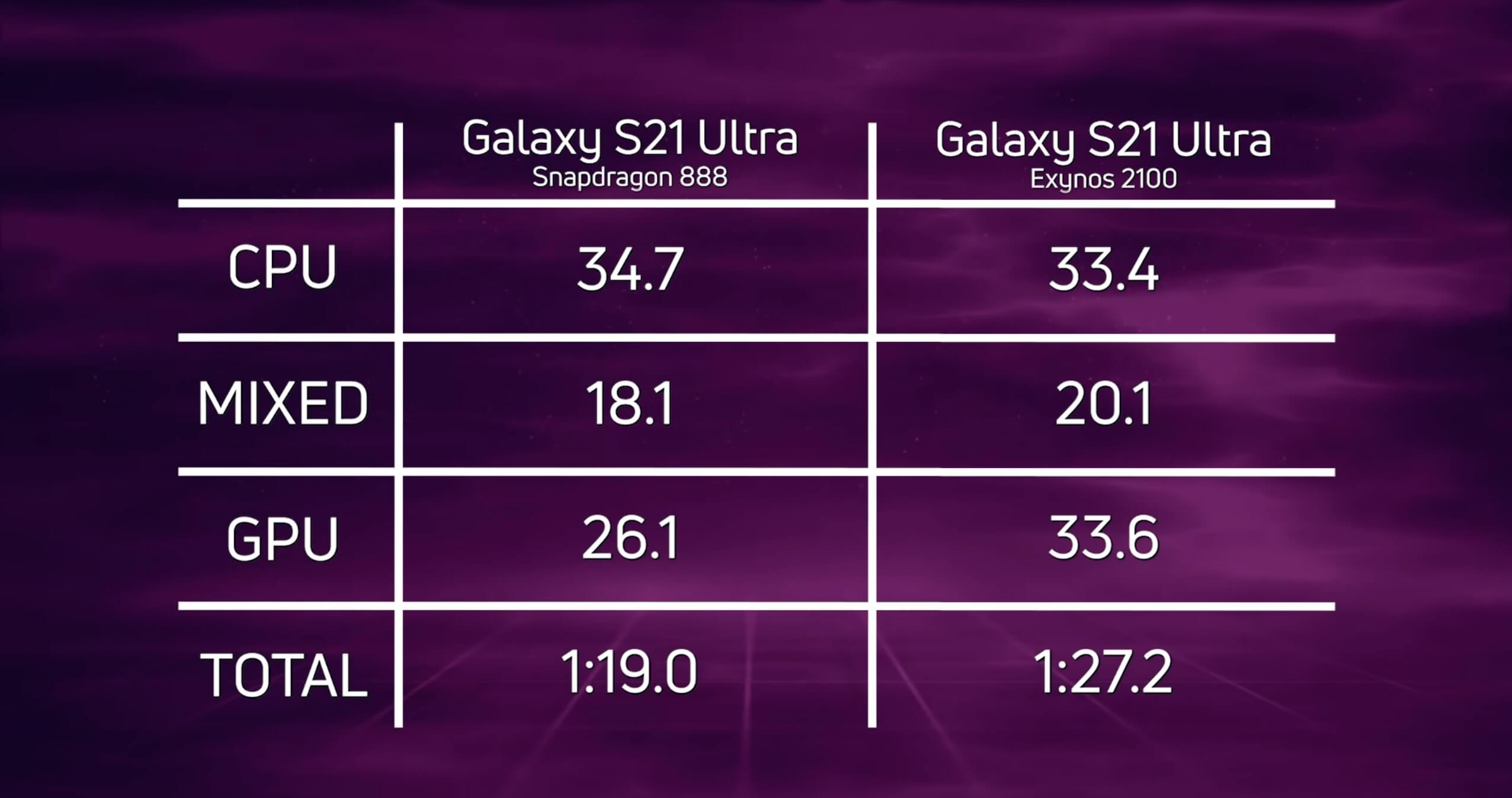 SpeedTest G에서 새로운 성능 테스트를 하였으며 갤럭시 S21 울트라의 엑시노스 2100 및 스냅드래곤 888 변형의 성능을 보여주었습니다.