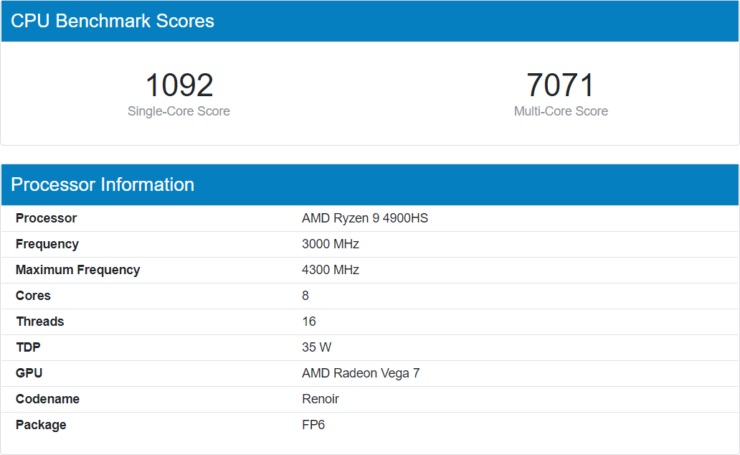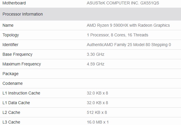 라이젠9 5900 시리즈가 탑재된 새로운 노트북이 초기 소매 업체 목록을 통해 유출 되었을 뿐만 아니라 APISAK도 긱벤치(Geekbench) 벤치마크 데이터베이스 항목에서 발견 되어 새로운 AMD 프로세서의 사양을 공개 되었습니다.