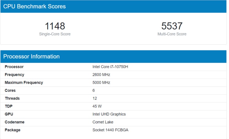 단일 스레드 점수가 1423점이고 다중 스레드 점수가 6912점인 이 프로세서는 코어 i7-10750H보다 23% 빠른 것으로 보입니다.